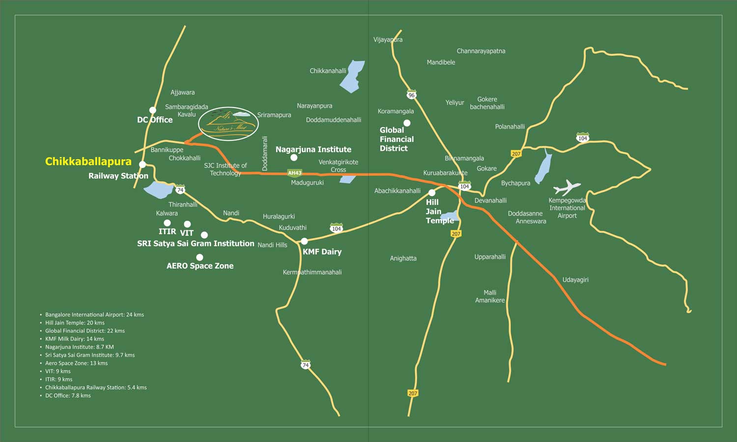 Natures mist, a bouquet of exclusive villa plots developed by Goldline Group and Artius Infra, promises excellent infrastructural amenities with long term investment gains. Only 20 minutes’ drive from the new international airport,the strategically located property assures apprecition in value. Natures mist located at Chikka Kadiganahalli,Chikkaballapur district, north Bangalore, is adorned with landscaped gardens, a play area for kids, a fully decked-up club house and comes with all other basic amenities. Now you can leave behind the stress of city congestion andcelebrate a healthy, joyous life in the lap of nature. Natures mist is a perfect opportunity for those who do not wish to snap the chord which binds us to nature, without compromising on the perks of urban luxuries and business possibiliries.